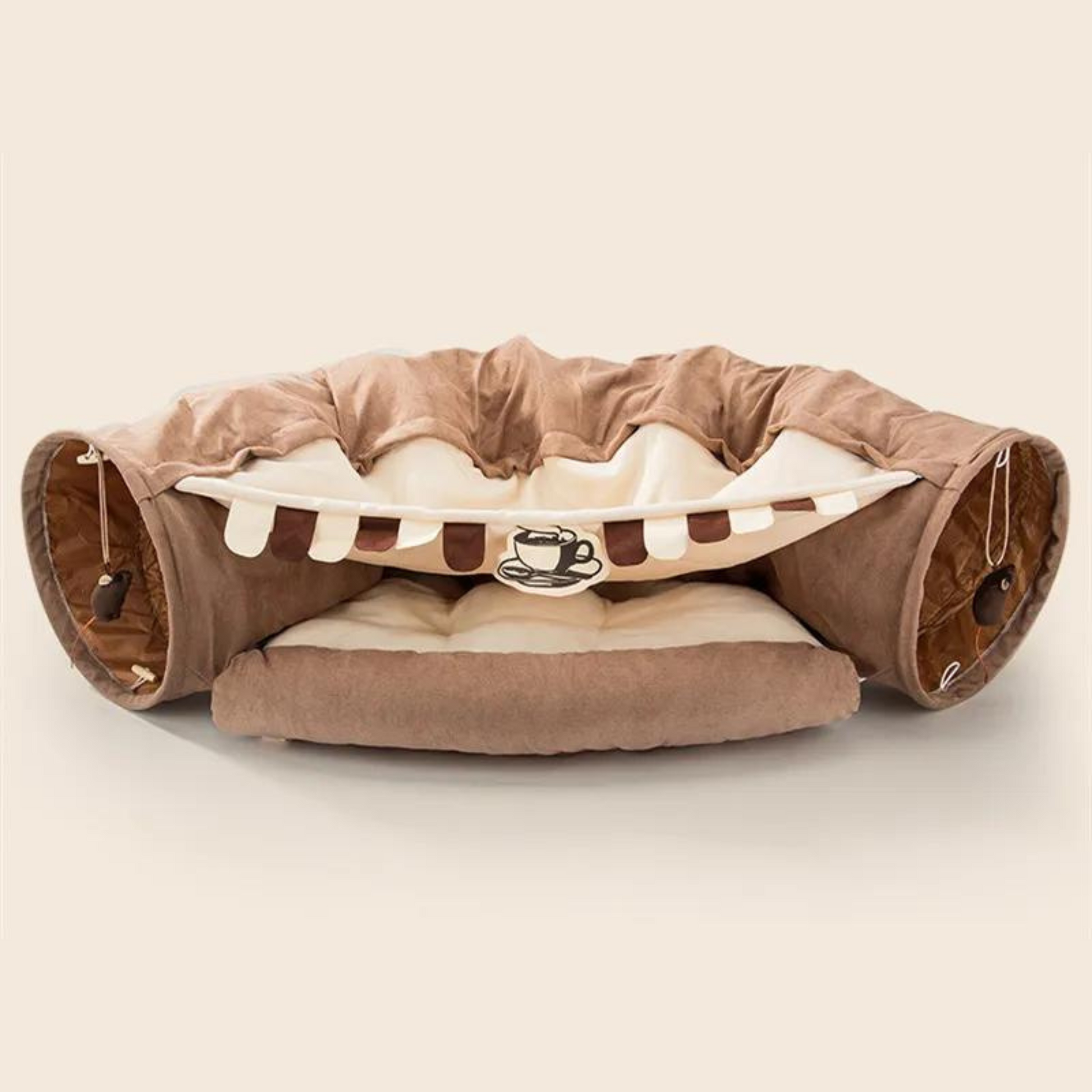 Endless Fun: The Cat Tunnel Bed offers endless entertainment for your cats. Watch them run, chase, and hide around the tunnel, stimulating their natural instincts and keeping them active and engaged. Equipped with an attached cat teaser, our tunnel bed adds an extra layer of excitement.